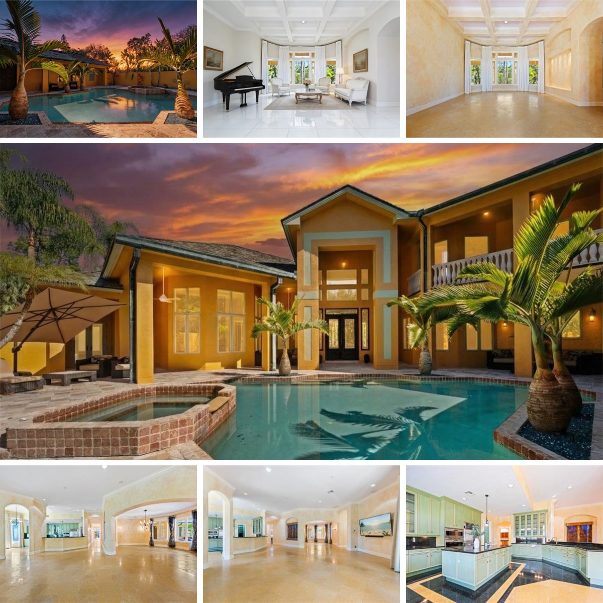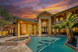 Strategically priced to sell under market value!!! There are homes you visit, and then there are estates that quietly feel like an escape from the ordinary. Set behind lush tropical landscaping on three private acres, this Mediterranean inspired residence offers an exceptional blend of space, privacy, and the relaxed elegance that defines Southwest Florida living; surrounded by 150 palm trees and a raised garden bed. Expectations build as you peruse down the private road leading to the last home which boasts a paved circular drive. Spanning approximately 7,100 square feet, the two-story home welcomes you with dramatic 15-foot ceilings, classic architectural details, and interiors filled with natural light. Travertine flooring runs throughout the main living areas, reflecting the sunlight that pours in through oversized windows and glass doors, creating a warm and inviting atmosphere throughout the home. The residence offers four generously sized bedrooms, four bathrooms, a private office, media room, parlor, dinette off of kitchen, and an additional flex room that can easily serve as a fitness space or den. Easy conversion of library and office into additional bedroom with ensuite bathroom. Best of all, doesn't every beautiful dog deserve its own doggy hotel? This estate appreciates our little furry friends and has made accomodation for a private doggy bedroom with a viewing area to see oncoming visitors. Parlor overlooks the 44' back patio extending from the primary bedroom and living room areas. Every space has been designed to provide comfort, flexibility, and the ability to accommodate both quiet everyday living and larger gatherings with ease. The main living areas flow naturally toward the outdoor living spaces, where the home truly captures the spirit of Florida living. Hardwood maple staircase flows into flooring on the second level. A separate casita flows around the heated saltwater pool and spa area which feels like a private resort, surrounded by mature landscaping and open skies. Aesthetic appeal of home enhanced by slate roof and copper patina gutters. Highly impressive is slate indoor fountain with multiple colors selections. It is a place for long afternoons in the sun, evening dinners outdoors, and peaceful mornings when the only sounds are rustling palms and distant breezes. While the setting feels private and secluded, the property is located only fifteen minutes from the white sand beaches and turquoise waters of the Gulf. Residents enjoy the rare advantage of estate style living while remaining close to Naples' renowned beaches, restaurants, shopping, and cultural attractions. Additional features include a three car garage and a full house Generac generator, providing comfort and peace of mind throughout the year. For buyers arriving from colder climates or from abroad, this home represents something truly special. It offers space to breathe, sunlight throughout the year, and the lifestyle that draws so many people to Southwest Florida. The property is offered at $2,999,000, a price intentionally positioned below market expectations for an estate of this size, acreage, and location. There are no governing HOA or deed restrictions. It represents a rare opportunity to acquire a luxurious Naples property that combines privacy, scale, and proximity to the Gulf. This is Naples living at its most refined, where space, light, and tropical surroundings come together to create a home that feels both elegant and welcoming.
